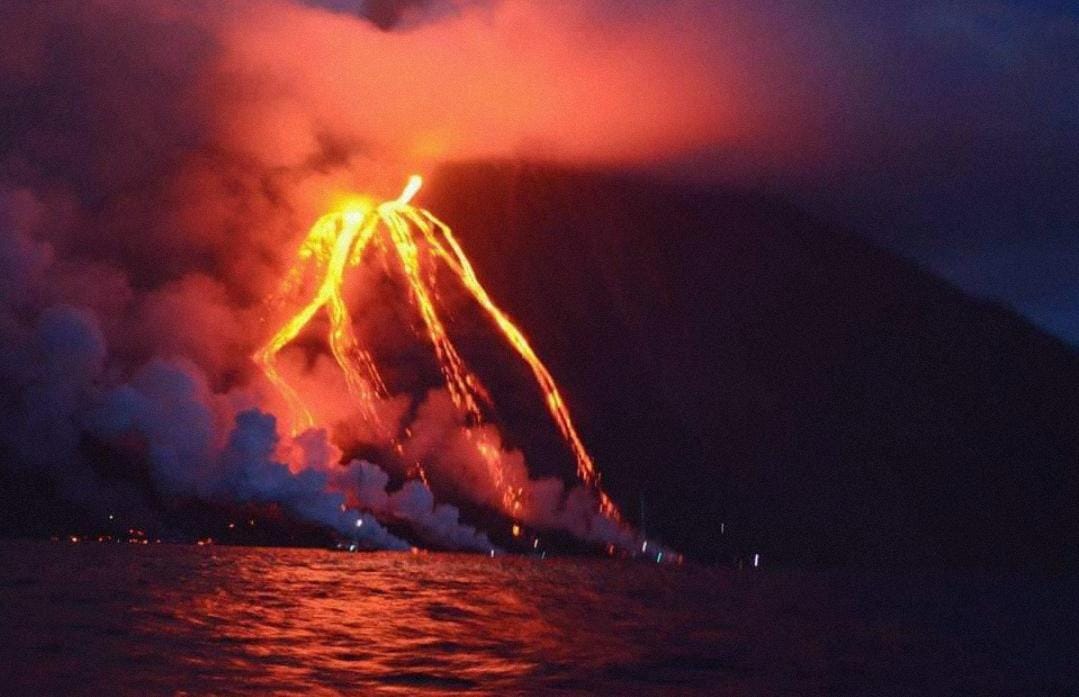 Arrivo in prossimità di Stromboli alle ore 19:20 circa Circumnavigazione dell’isola di Stromboli per ammirare la “sciara del Fuoco”, la sosta prevista è di 40/45 minuti circa.